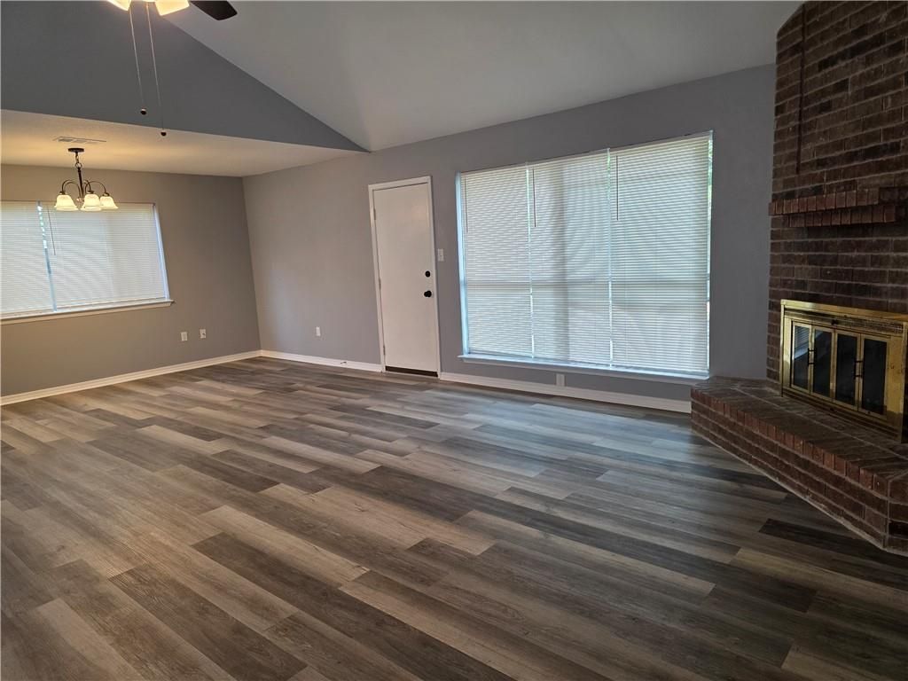 Beautifully renovated home featuring an open-concept floor plan and modern updates throughout. The spacious living room includes a cozy fireplace and flows seamlessly into the dining area?perfect for entertaining. The kitchen is equipped with a stainless steel range and dishwasher, plus a bright breakfast area. All three bedrooms offer walk-in closets, providing ample storage space. Both bathrooms have been updated with fresh paint and new countertops. Enjoy low-maintenance living with no carpet throughout the home. Step outside to a fully fenced backyard?ideal for relaxing or hosting guests in a private setting. Conveniently located with easy access to the interstate and nearby shopping and grocery stores. Small dogs may be considered on a case-by-case basis with a $300 non-refundable pet deposit. Renter's insurance is required.