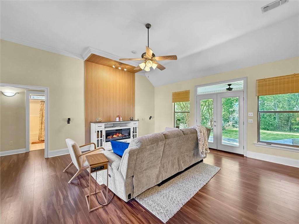 Better than new, this is a chance to be in the sought-after and gated Lake Ramsey subdivision. Tastfully renovated, you'll find extras here you don't see even in new construction, such as the manicured front and rear garden with mature crepe myrtle trees, an outdoor building with electricity and an additional shed beyond, the coffee/drink bar in the dining room, and the additional paved driveway to store a boat or other toy just behind the back fence. The kitchen has gorgeous cabinets, a walk-in pantry, and updated appliances with a bar top. The living room and fireplace were renovated to all better flow for entertaining, and the primary bedroom features recessed ceilings and tons of space. In the primary bath you'll find a stand up shower with an additional jetted tub and not one, but TWO generous walk in closets. The back patio is covered with a ceiling fan to keep you cool as a cucumber and the yard is fully fenced for furry friends. There's also a full garage with built in metal cabinets and the attic is floored and walkable, perfect for all kinds of extra storage. The lake in the subdivision is stocked with incredible fish and the private neighborhood launch and pier is open to residents only.
