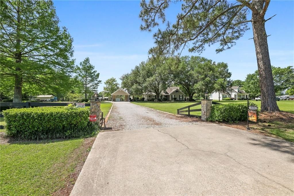 This is a must see home located in a rural setting in Independence. With it's beautiful entry to an oasis, this is where your family can experience a home surrounded by amenities, such as a pond, a very inviting pool, a 19' X 28' pool house for recreation, a spacious outdoor kitchen and a covered patio from which you can enjoy it all. It is situated away from the main road among beautiful oaks where the slightly over three acres become a paradise. It also boasts a 20' X 40' workshop as well as a horse barn, for those who may have horses or would like to! Beautifully landscaped and very well maintained. The home features an open floor plan which includes a living area with a cathedral ceiling, a gas fireplace, built-ins, a dining area and granite countertops on island and kitchen counters, with all stainless steel appliances. Primary bedroom has a bath with his and her vanities, jacuzzi and walk in shower. The home has luxury vinyl flooring in the majority of the home. Property is high and dry! No flooding here. The property is Flood Zone X. This is a property that has all and fits all! See other features included in Attachments.