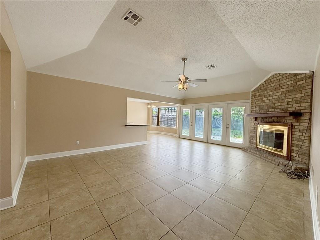 Beautiful 4-bedroom, 2-bath home featuring durable ceramic flooring throughout?no carpet! The open kitchen and breakfast area showcase granite countertops and stainless steel appliances, including a refrigerator, range, and dishwasher. Enjoy meals in the dining area with charming bay windows. The spacious great room offers a cozy fireplace and impressive cathedral ceiling, creating an inviting atmosphere. The primary suite includes a relaxing garden tub with shower. Additional highlights include a well-sized laundry room with washer & dryer included. Step outside to a fully fenced yard, ideal for privacy and outdoor gatherings.
