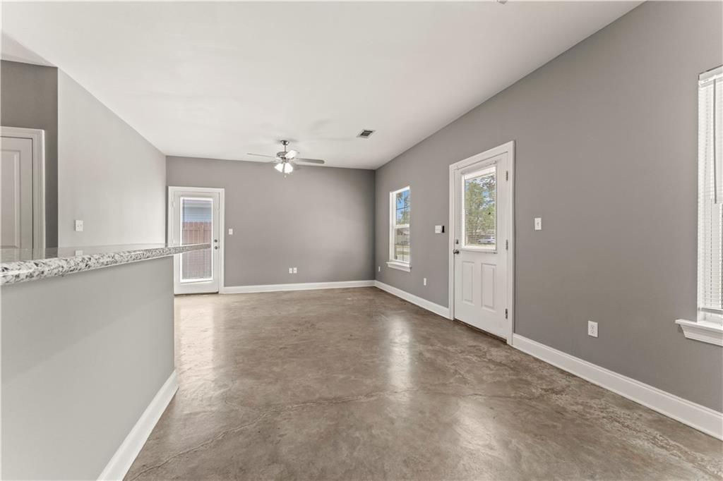 Here's a charming 3-bedroom, 2-bathroom duplex available for lease in the heart of Hammond. Walking distance to all of downtown and multiple parks. This duplex features scored concrete flooring and granite countertops throughout. Equipped with central A/C and heating for comfort. Enjoy the inviting front porch and side courtyard, complemented by ceiling fans and 9-foot ceilings. Appliances includes a microwave, range oven, dishwasher, and garbage disposal. Lawn maintenance is included. Fenced in side yard.