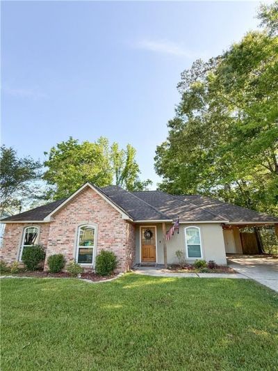 Charming 3 bed, 2 bath home in Mandeville - available for lease May 1st! This well-maintained home features a spacious living room with a cozy fireplace, a kitchen equipped with stainless steel appliances , primary suite with dual closets and a convenient make-up counter. Outside offers a fully fenced in backyard with a storage shed and covered patio to enjoy grilling and chilling.