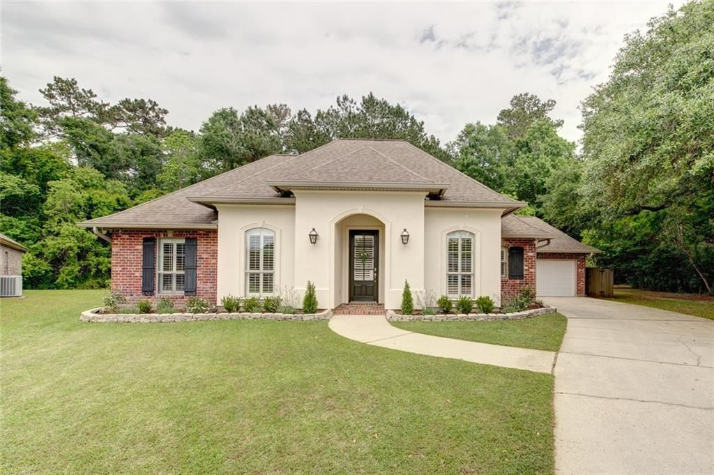 This 2,285-square-foot single-family home, is tucked away in a quiet cul-de-sac within the Autumn Lakes subdivision. Built in 2006, the residence features 4 spacious bedrooms and 2 full bathrooms and is designed with a functional and open layout. The home boasts a modern interior with cathedral ceilings, crown molding and durable flooring throughout the main living areas. Carpet and tile were updated in 2024 as well as the entire interior of the home was painted. The gourmet kitchen is equipped with elegant granite countertops and lots of cabinet space within all wood cabinets and includes stainless steel appliances including dishwasher, microwave, a gas range, pantry and utility room with storage shelving and mop sink. The primary bedroom serves as a comfortable retreat, featuring a step-up ceiling, his/hers walk in closets, an en-suite bathroom with linen closet and double vanities with space for a seat. Stay cool year-round with a central cooling system with all new duct work in Dec 2025 and cozy up by the fireplace during cooler months and don't forget about the plantation shutters throughout the house. The exterior is finished with a classic blend of brick, stucco (painted in 2026) and vinyl siding, complemented by an attached garage for convenient parking, front nicely landscaped, large fenced rear yard and a large patio made from pavers with a natural gas hook up for a gas grill. Situated on a cul-de-sac lot, the property offers a safer, low-traffic environment and a neighborhood nature trail on one side. Residents benefit from the Autumn Lakes HOA, which maintains neighborhood standards with a modest annual fee of approximately $300. Demand school district, flood zone C and easy access to everything!! Come see this Slidell beauty today!!