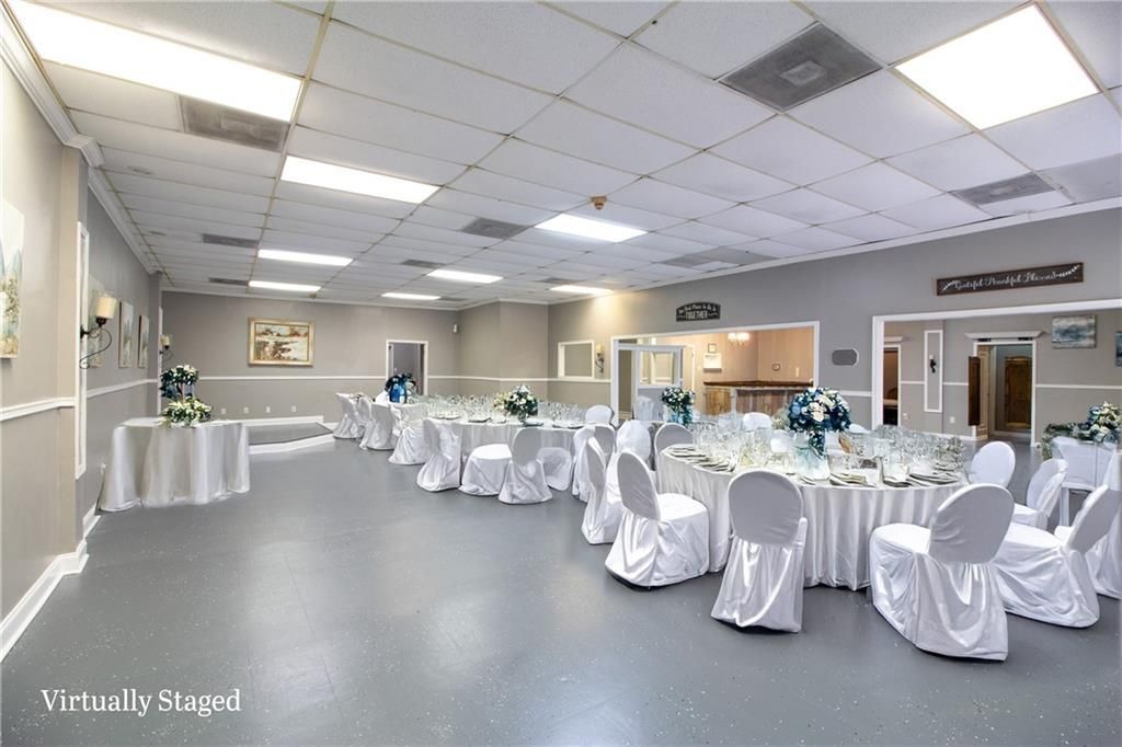 Spacious 3,270 Sq Ft Event-Ready Building with Endless Potential. This 3,270 sq ft building, most recently operated as a reception hall and event center, offers incredible flexibility for a wide range of uses. The open layout provides ample space for gatherings, business operations, or creative redevelopment. Features include a large, fully equipped kitchen, multiple storage areas, a dedicated bar setup, two bathrooms, and a private office. A large parking lot ensures convenient access for guests or customers, while the expansive surrounding land offers excellent potential for future expansion. Whether you're envisioning an event venue, restaurant, community space, or a completely new concept, the possibilities here are truly endless.