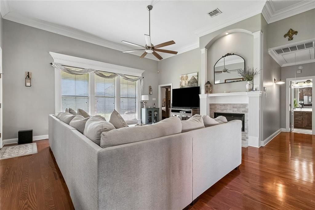 Gorgeous 4 bedroom 3 bath home in beautiful Sugarwood subdivision. Features high ceilings and beautiful crown molding. Large master suite with tray ceiling. Open floor plan from kitchen to den and dining area. Granite counters in kitchen. Beautiful wood floors in den with fireplace and lovely mantle. Master bathroom has double vanity and large whirlpool tub with separate shower. Very large walk in closet in master. Large covered patio and all fenced back yard. For your peace of mind, a natural gas whole home generator is an extra added bonus. THIS HOME IS A MUST SEE!!
