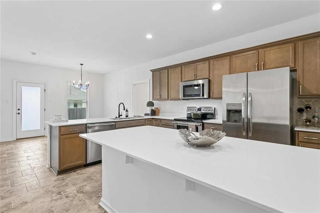 Tastefully built 3 years ago! A functional open layout offers 3 bedrooms, a desk area, 2 full bathrooms, large kitchen with center island & dining area open to the living room. The entertaining continues outside where you can enjoy sitting on the large, covered patio overlooking the back yard. With energy friendly components throughout so your utility bills stay affordable. Located close to the interstate for all your commuting needs while being in a peaceful subdivision. Adding to the superior location this home is the very last home on a quiet Street & next to a wooded area. Flood insurance is not a requirement providing both peace of mind & affordability. Contact your Realtor & preview this home today!