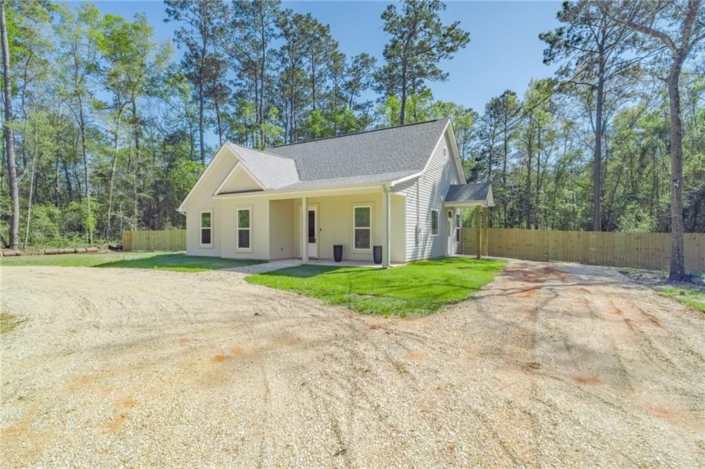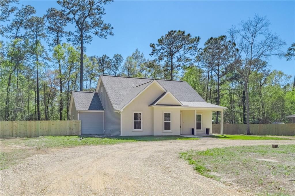Beautiful new construction home in Lacombe situated on a spacious .62-acre lot with a convenient circular driveway and plenty of room for boat and RV parking. This 3 bedroom, 2 bath property offers an open and inviting floor plan with no carpet throughout, making it stylish, low-maintenance, and perfect for easy living. The bright kitchen features modern finishes, ample cabinetry, and a large island ideal for entertaining and everyday use. The primary suite provides a relaxing retreat with a private bath and generous closet space. Two additional bedrooms offer flexibility for guests, home office, or needs. Enjoy the peace of mind and efficiency of a well and septic system, along with the benefits of brand-new construction. Step outside to the covered back patio, perfect for outdoor entertaining or quiet mornings. With plenty of space, parking options, gutters and modern design, this home combines comfort, convenience, and country charm just minutes from local amenities and outdoor recreation.