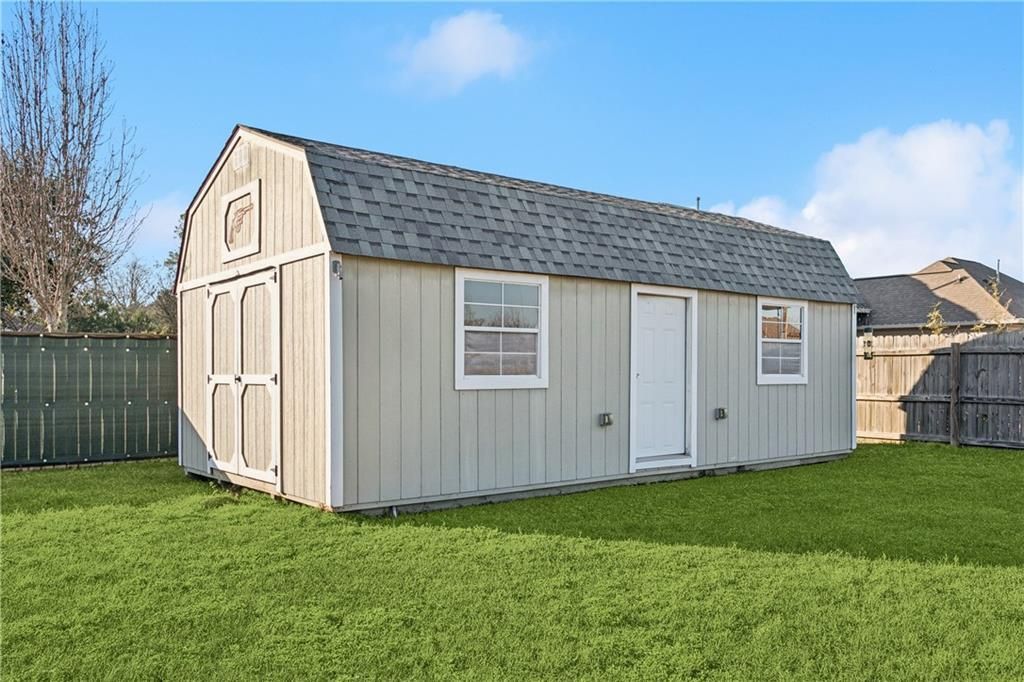 14x26 insulated shed with AC & electricity INCLUDED! This workshop is equipped with pegboards, windows, a single door entrance and a double door entrance - an ideal space for a workshop, home office, gym, or extra storage. This home has had only one owner and is meticulously cared for! The open-concept kitchen features a huge center island, granite countertops, gas stove, and ample cabinetry. The living area is anchored by a cozy gas fireplace, creating a warm and inviting space, perfect for everyday living. Save on utility bills with LOW-E windows, R 30 insulation, and a tankless water heater. Conveniently located near the front of the neighborhood where you can walk to the local grocery store!