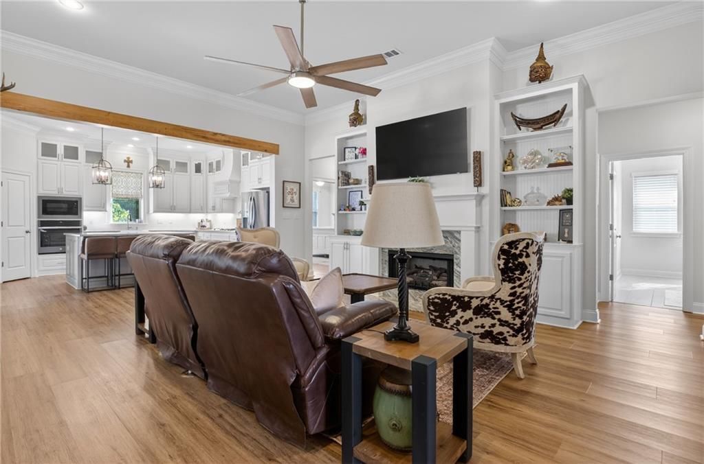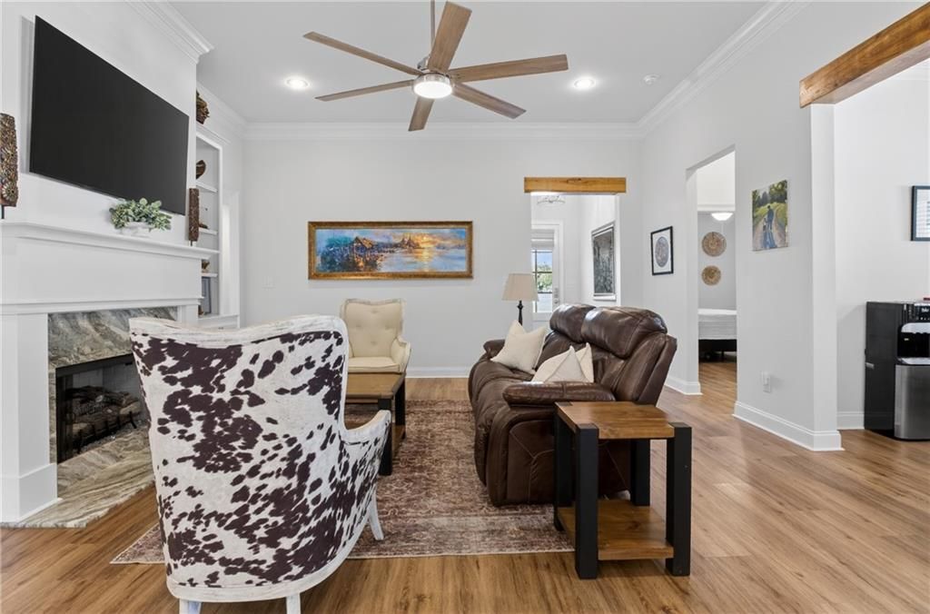 Exquisite sophistication in Carter Plantation, delivering something truly rare. This is one of the most desirable lots in the subdivision, one of only four offering golf course views from both the front & back?creating an intentional, unmistakable setting w/uninterrupted course scenery.Thoughtfully designed w/an effortless open floor plan featuring 4 bedrooms, 3 baths, dedicated office &a formal dining room. The craftsmanship is immediately evident w/exposed beams, high ceilings, beautiful molding, plantation shutters, marble gas fireplace & high-end fixtures/finishes throughout. A floored attic & whole-home generator add convenience w/o compromise. The kitchen is equally refined and functional, complete w/quartz countertops, eat-at center island, designer cabinetry, top-of-the-line appliances & a pot filler?details that set it apart from standard construction. Outdoor living is just as impressive w/an expanded patio for entertaining & a backyard enclosed by a metal fence that preserves remarkable views. Overlooking the tee box of hole 17, the setting feels open, private & perfectly placed all in preferred flood zone X for added peace of mind.This is more than a home?it's a front-row seat to a prestigious lifestyle centered around comfort, leisure & community. Residents enjoy resort-style amenities including a pool, clubhouse, pickleball courts, fitness center, playground & on-site restaurant?all within a true golf course setting where leaving the gates is optional, not necessary. Seller offering 1% of purchase price towards buyer's pre-paids/closing costs at closing.