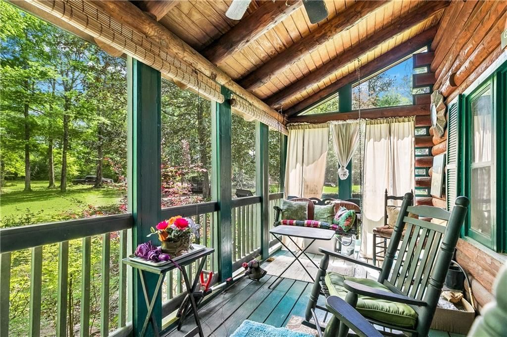 Tucked away on approximately 16.56 acres, this unique log cabin property offers a rare blend of privacy, natural beauty, and versatile living space. Surrounded by mature trees and open land, the setting provides a peaceful backdrop with established blueberry bushes, fruit trees, and a pond that adds to the property's charm. The main home features a two-story log cabin design with warm wood finishes throughout, creating a welcoming and comfortable atmosphere. Inside, you'll find a thoughtfully updated kitchen with granite countertops, along with multiple living spaces that offer flexibility for everyday living or entertaining. The layout includes two primary suites, an office space, and an additional landing area upstairs that can be used in a variety of ways. Enjoy the outdoors from multiple vantage points, including a covered patio, a screened-in front porch, and an additional screened-in porch along the side of the home?ideal for relaxing and taking in the surrounding scenery year-round. In addition to the main home, the property also includes a separate residence that was previously used as a short-term rental, offering potential for extended living arrangements or supplemental income opportunities. With ample space to spread out, explore, and make your own, this property presents a unique opportunity for those seeking land, privacy, and a one-of-a-kind home setting.