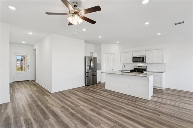 Move in ready! Well maintain 3 year old home features 3 bedrooms, 2 baths. Open split Bellvue floor plan. The home features stainless steel kitchen appliances, granite countertops, washer, dryer, and window blinds. Oversize primary bedroom with ensuite bathroom that includes double sink vanity, separate enclosed shower, soaking tub, and walk-in closet. Backyard views of the community pond. Welcome to Cypress Reserve a D. R. Horton Community, subdivision features include a community gated inground pool, splash pad, pavilion area, playground, and ponds.