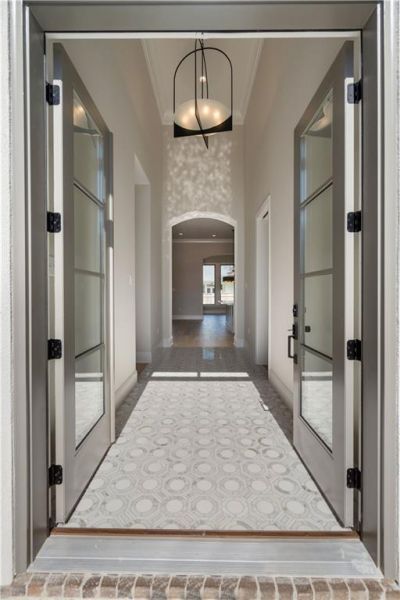 Tucked behind a private, gated courtyard, this 4-bedroom, 3-bath residence welcomes you with a dramatic two-story marble foyer that sets the tone of refined modernity. Graceful arched openings offer a subtle transition, creating definition while maintaining an open flow between spaces. The heart of the home features a painted brick fireplace with a modern, picture-frame wood mantle, flanked by custom-built-ins. The kitchen is a study in contemporary elegance, featuring a marble backsplash, fluted glass pendants, and quartz countertops that complement sleek cabinetry and elevated finishes, making the space both functional and stylish. Just beyond, the dining/ keeping area feels intimate yet spacious, anchored by a domed chandelier with gold accents that lends a soft, sculptural glow. The primary suite is a true retreat. The luxurious primary bathroom features underlit floating wood vanities, illuminated mirrors, & Cristallo Quartzite countertops. The modern freestanding tub & sleek European shower anchor the space, and a floor-to-ceiling textured tile wall complete the serene, artful sanctuary. Each of the three additional bedrooms is spacious and thoughtfully designed, featuring distinctive bathrooms that add character and polish. Pops of green tile, gunmetal fixtures, and unique marble hardware enhance depth and detail in every space. Outdoors, a fully fenced backyard and kitchen create the perfect setting for entertaining or unwinding at home. Dedicated office space. Located within the Estates at Watercross, residents enjoy private boat launch access, lush park space, and a central Covington location close to shopping, dining, and I-12.
