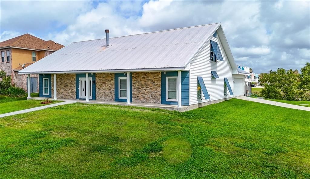 Immaculate, acadian style, two story custom built home with well maintained metal roof featuring an expansive primary bedroom and bath on the first floor. A huge upstairs bonus room. Oversized corner lot with plenty of room for RV & boat...just 5 minutes from Lake Pontchartrain by boat and a 20 minutes drive to NOLA. Sunsets like no other from your new dock. Call for a visit today! 504.615.3943. Relo packet will be sent with offer.