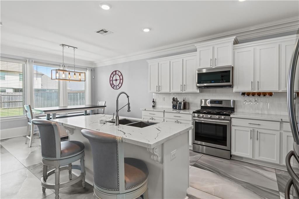Welcome to the heart of Slidell/St. Tammany living! This stunning, fully renovated home (2020) blends modern luxury with timeless charm. Step inside and you're greeted by soaring ceilings, a sparkling crystal chandelier, and a grand custom staircase with elegant iron rails. The open floor plan is perfect for entertaining family and friends, offering nearly 2,700 sqft of living space designed with top-of-the-line finishes. Every detail has been carefully crafted?porcelain floors, 12-inch crown molding, and 12-inch baseboards throughout. The chef's kitchen features quartz countertops, stainless steel appliances, and a seamless flow into the living areas. Each bedroom boasts hardwood flooring, while the bathrooms showcase quartz countertops, marble flooring, and custom glass accents for a sophisticated touch. One bedroom has been transformed into a luxurious walk-in custom closet complete with granite countertops?perfect for the fashion enthusiast. Outside, a huge backyard provides the perfect space for gatherings, play, or simply relaxing and making lasting memories. Located in a desirable Flood Zone X, this property offers peace of mind and a one-of-a-kind lifestyle. ? Truly a must-see!