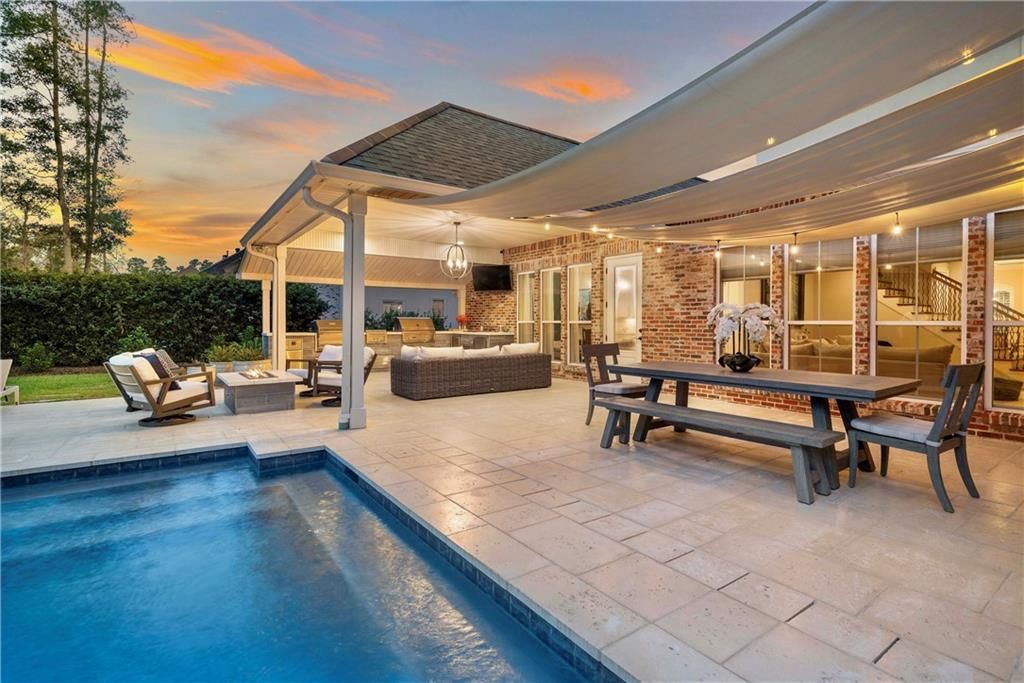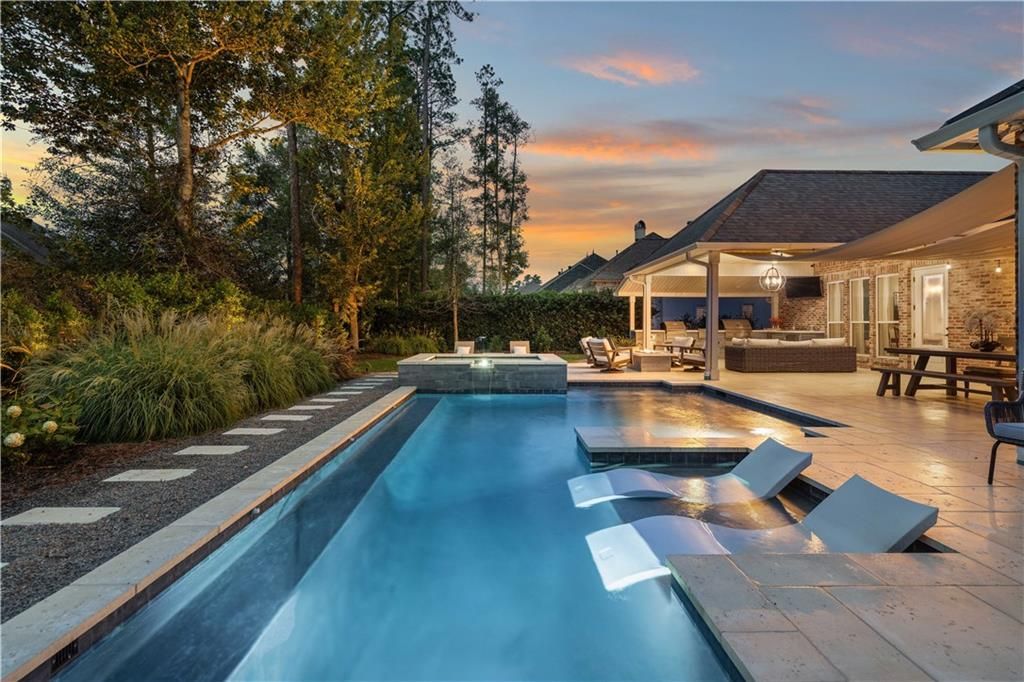 Welcome to your private escape in the prestigious, gated community of Natchez Trace?where luxury meets laid-back Louisiana living. This home was made for entertaining, featuring a stunning outdoor setup with a custom heated pool and spa by Joe Crowton, a fully equipped outdoor kitchen, and a gas fire pit?all with plenty of yard space left to enjoy. Inside, stylish finishes and a thoughtfully designed layout offer two spacious living areas and a dedicated office. The primary suite plus an additional bedroom are conveniently located on the main floor. While the upstairs features two additional bedrooms, full bathroom, and more. The upgraded mudare with floor-to-ceiling cabinetry, built-in outlets, and removable dog bowls adds a smart, everyday touch. Generator-ready, security-equipped, and located in a preferred flood zone?this home delivers comfort, function, and standout style inside and out all inside one of St. Tammany's most desired communities.