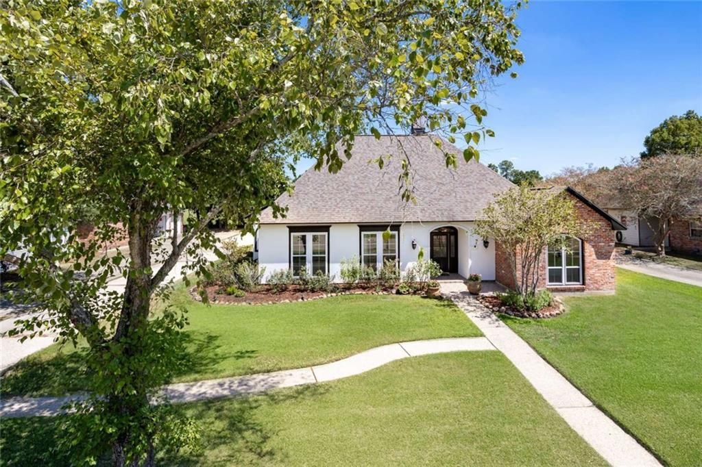 Charming custom home in the highly desirable Live Oak Estates, a beautifully maintained single-entrance neighborhood just off historic Highland Road with convenient access to I-10. Located in the City of St. George, this move-in ready home offers comfort and convenience just minutes from shopping, dining, and Highland Road Park. Step inside to discover spacious open living areas filled with abundant natural light from numerous custom seven-foot windows with detailed wood trim. Architectural details include soaring ceilings, elegant archways, crown molding, custom built-ins, and chandeliers, creating a refined yet welcoming atmosphere. Oak wood flooring and ceramic tile extend throughout the home. Multiple living areas?including a formal dining room, kitchen, keeping room, and bright sunroom?provide ample space for relaxing or entertaining. The updated kitchen features granite countertops, a large eat-at center island, stainless steel appliances, and extensive custom cabinetry with built-in spice storage and custom drawers. Arched windows above the sink and the adjacent keeping room create a bright and inviting space for cooking and casual dining. The home's desirable triple-split floor plan provides both privacy and flexibility. The primary suite offers a peaceful retreat with a tray ceiling, crown molding, and a sitting area. The en-suite bathroom includes a cathedral ceiling, skylights, dual vanities, a jetted soaking tub, and a separate tiled walk-in shower, along with a spacious walk-through closet with custom shelving. A bright sunroom opens onto a peaceful backyard patio, perfect for enjoying morning coffee or entertaining family and friends. The newly fenced yard provides added privacy and outdoor enjoyment. Additional highlights include energy-efficient windows with a transferable lifetime warranty, wireless thermostats for both HVAC systems, and a Flood Zone X location. This inviting home offers a wonderful blend of Southern charm and modern comfort.