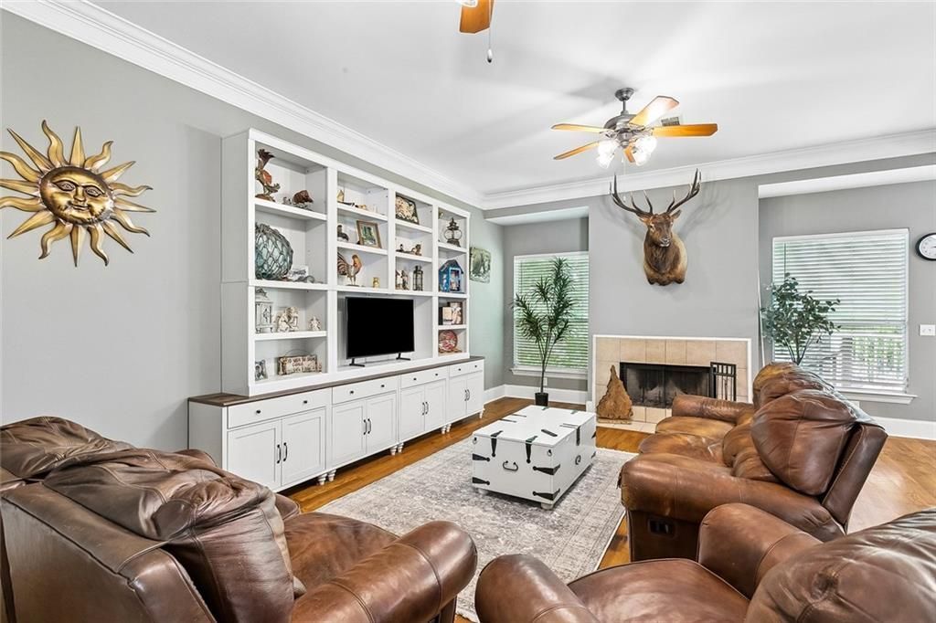 Set beneath mature trees in Mandeville, this raised traditional home offers the space, layout, and added versatility that can be hard to find. The interior features real wood flooring, a welcoming living room with built-ins and fireplace, separate dining space, and a bright kitchen with white cabinetry, stone counters, and stainless appliances. The primary suite includes tray ceilings along with a spacious bath featuring dual vanities, soaking tub, and separate shower. A standout feature is the approximately 1,300 square foot heated and cooled bonus space/shed, giving buyers added flexibility for hobbies, storage, workspace, or other future needs. Outside, the large deck, open yard, and wooded setting create a peaceful extension of the home.