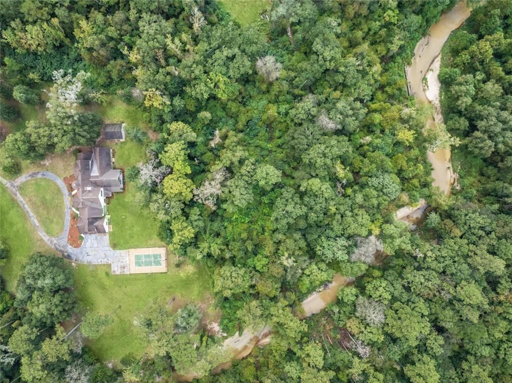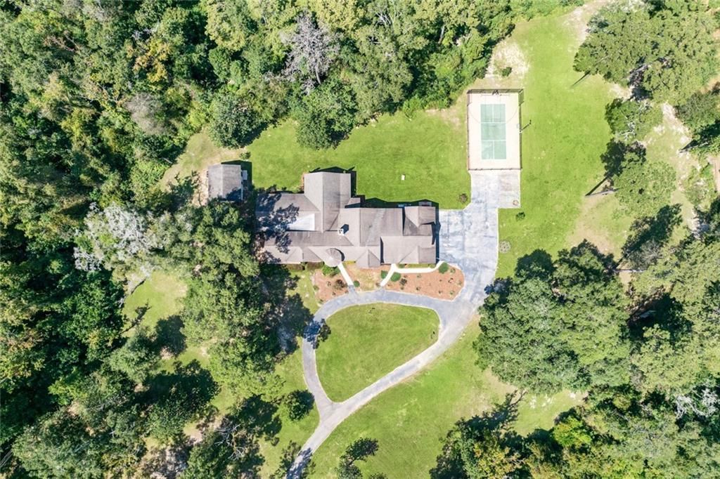 This 9.46 acre estate is nestled on the white sands of the Bogue Falaya River, features a covered swimming pool, pickleball court, and is only minutes from the Downtown Covington retail and entertaining corridor. Ideal as a full-time residence or a weekend getaway from the southshore, the quintessential 'Modern Farmhouse interior begins with a two-story foyer that opens to the spacious living room and kitchen, both with large windows that offer beautiful views of the surrounding acreage. The first floor also features the master suite, an office, full bath and mud room. The second floor is home to three bedrooms, two baths, several walk-in bonus and storage rooms, and a 1350+ sf entertaining room currently used for billiards and a home theater. The gorgeous grounds of this enviable 'River Road address feature a large pond, winding driveway, pickleball court, covered swimming pool, a two-story ancillary building and direct access to the Bogue Falaya River. The seller acquired the adjacent approximate 2-acre parcel which increased the size of this estate from 7.8 acres to 9.46.