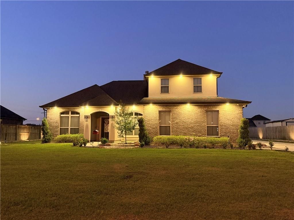 Have it ALL with this Live Oak Estates residence, loaded with custom upgrades that remove basic builder quality and style and elevate this home. Property features 4 bedrooms with dedicated office or 5th bedroom, 2.5 bathrooms situated on a huge 1/2 acre lot making this the perfect blend of indoor elegance and outdoor serenity. Step inside to find the open concept living area, with upgraded paint and luxury plank flooring. The kitchen/living space is designed for cooking enthusiasts, with upgraded cabinetry, large island, and pantry for added storage. Living space is the coziest with custom tile wood burning fireplace overlooking the expansive yard. The primary bedroom is conveniently located on the main floor, offering privacy and accessibility, complete with a large ensuite bathroom and spacious walk in closet. Upstairs, you'll find three additional generously sized bedrooms, each featuring updated luxury plank flooring and excellent closet space. Walk in attic access offers tons of storage. Outside, you'll find perks that truly set this home apart: Extended driveway with additional parking, Oversized 2-car garage, Wrap around back patio provided the ideal atmosphere grilling, entertaining, or relaxing. This home really shines at night! Exterior soffit and landscaping lights provide an ambiance for all to enjoy making this property truly a dream. For added convenience, all kitchen appliances will remain, plus the 9 camera security system is included, giving you added peace of mind from day one. With its charm, thoughtful upgrades, and abundant space inside and out, this home is move-in ready and made for comfortable luxurious living. Don't miss your chance to make it yours! Schedule an appointment to view today. FLOOD ZONE X
