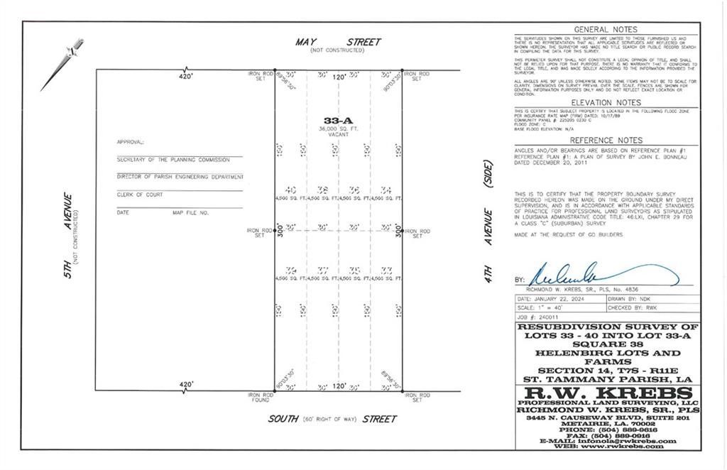 Lots 33-40 Square 38 Street, Covington, LA 70433.